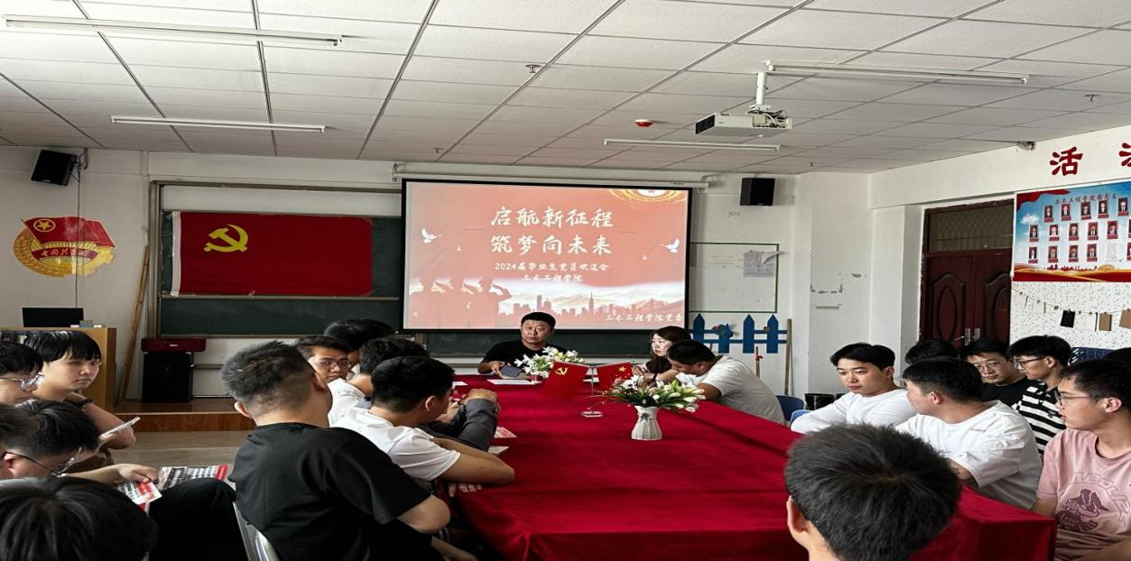 毕业生党员离校在即,为感谢毕业生党员为我院发展做出的贡献,表达对毕业生党员的深切关怀,促进新老党员之间的密切交流,2024年6月11日,土木工程学院在综合教学楼1106办公室组织开展2024届毕业生党员欢送会,出席会议的有土木工程学院党委书记、院长黄钰峰,土木工程学院党委副书记、副院长巩岩,各学生党支部书记及毕业生党员代表。