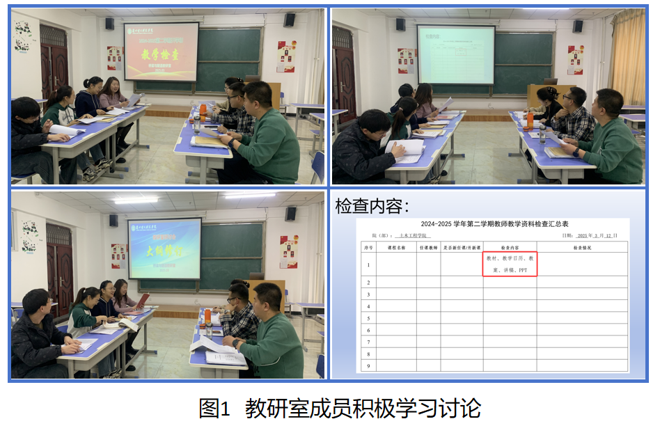 会上,教师围绕课堂纪律、学生出勤和提升教学效果等问题进行了交流汇报,对开学初教师的教学计划的执行情况、教案、讲稿、教室日志等教学各环节的教学资料以及教学场所设备设施运行等情况进行了互查和交流。结果显示,任课教师均能严格按照教学计划开展工作,教学资料完备;学生到课率良好,课堂气氛活跃。