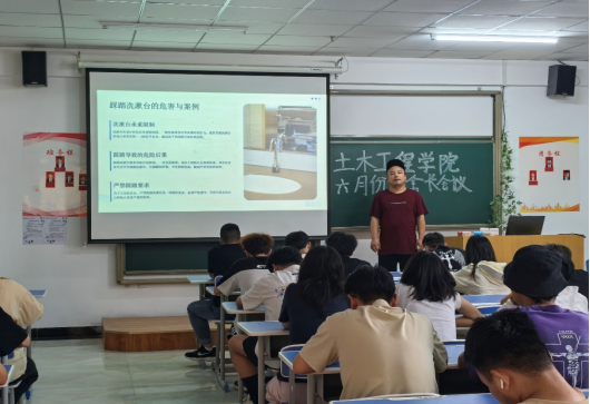 为全面强化学生公寓安全管理,预防各类意外伤害发生,2025年6月19日19:30,土木工程学院于综合教学楼1010教室组织召开以“意外伤害预防”为主题的宿舍长会议。此次会议由辅导员王路清老师主持,土木工程学院全体宿舍长参加。