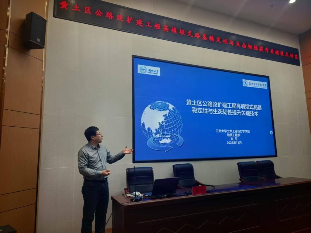 刘平教授长期致力于黄土地区交通基础设施建设与生态保护交叉领域的研究,在路基稳定性控制、生态修复技术等方面成果丰硕,具备深厚的理论功底和丰富的工程实践经验。讲座中,刘平教授结合我国黄土区独特的地质地貌特征,系统分析了公路改扩建工程中高填坝式路基面临的稳定性不足、生态破坏等核心难题,深入阐述了黄土的物理力学特性对路基工程的影响机制。
