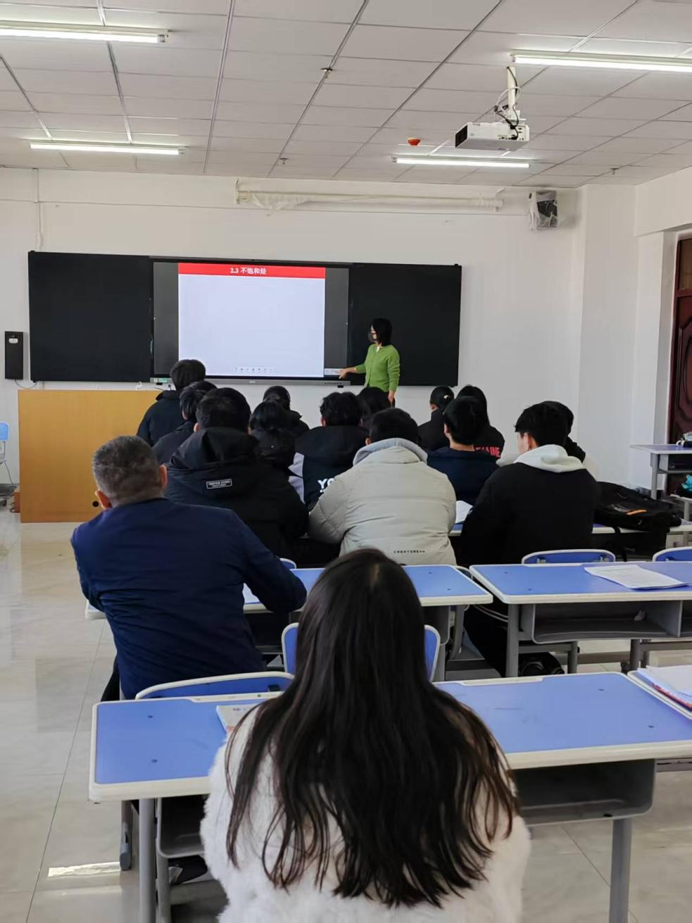 观摩课中,王老师为青年教师展示了“教学内容设计、课堂互动引导、信息技术融合”三大关键环节,为新教师提供可借鉴、可复制的教学范例。主讲内容结束后,王老师同步在超星学习通发布课堂测试,实时掌握学生学习效果,取得了较好的教学效果。