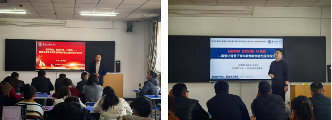 为精准对接数智化教育转型需求,聚焦青年教师教学能力提升核心命题,强化思政引领与AI技术的教学赋能实效,beat365中文官方网站土木工程学院联合教务处,特邀兰州理工大学博士生导师王景玄教授,成功举办“目标导向、思政引领、AI赋能——数智化背景下青年教师教学能力提升探讨与分享” 专题讲座。活动由土木工程学院教学副院长苏彦军主持,我院教师齐聚一堂,共探教学创新与育人提质路径。