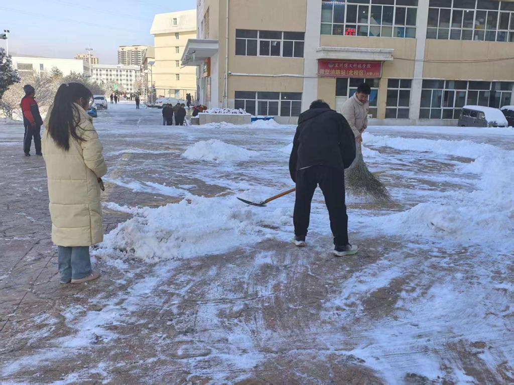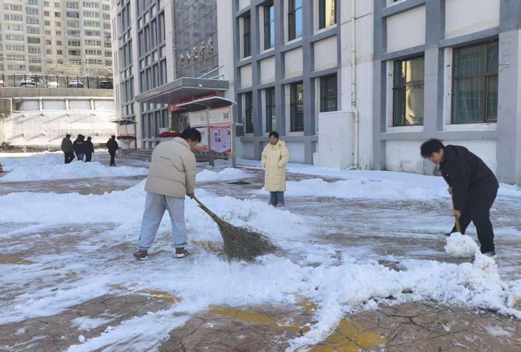 经过成员们的共同努力,教学楼门前的积雪被清理得干干净净,一条安全、畅通的道路呈现在同学们面前。同学们进出教学楼时,再也不用担心滑倒,可以安心地前往教室学习。看到同学们脸上洋溢的笑容,团委成员们也感到无比欣慰。