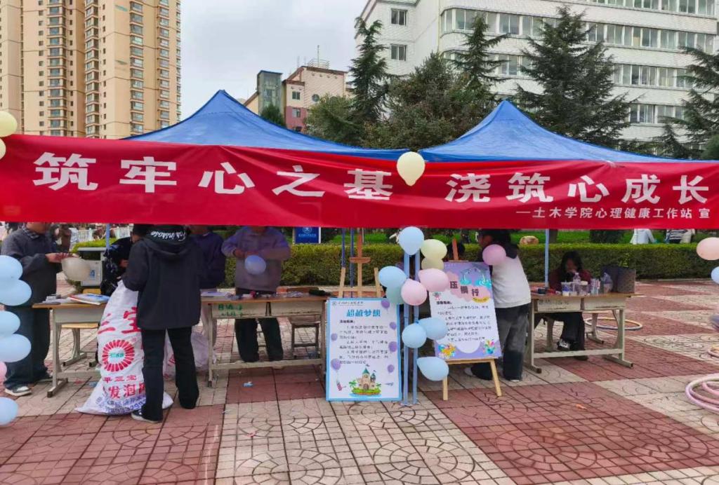 活动现场,土木工程学院心理健康工作站的摊位前人气最旺。“超越梦想”气球活动成为全场焦点:同学们在气球上写下“学业压力大”“担心考试成绩”等困扰,或“顺利通过资格证考试”“和同学相处融洽”等心愿,随后将气球放飞或集体踩破,以具象化方式释放情绪,学生们在答题与协作中深化对心理健康的认知。