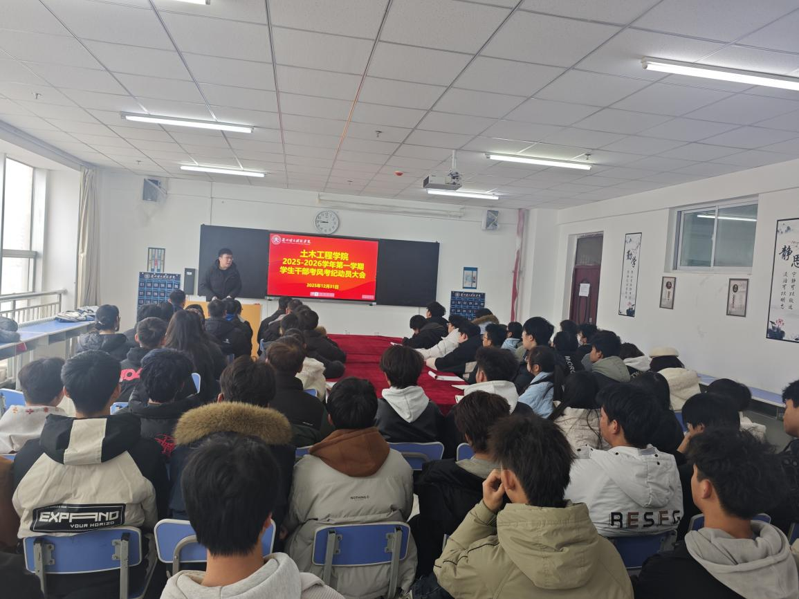 为进一步加强学风建设、严肃考风考纪,规范期末考试秩序,防止和杜绝学生考试违纪、作弊现象,维护期末考试的公平、公正,打造学院优良的学风,2025年12月土木工程学院全面开展考风考纪动员会。为确保动员会落细落实,覆盖全体师生,我院分批次开展此次动员会,全体教师专题会议由土木工程学院院长黄钰峰主持,全体学生党员、学生干部动员会由副院长巩岩主持,各行政班级专题班会由各班班主任主持。