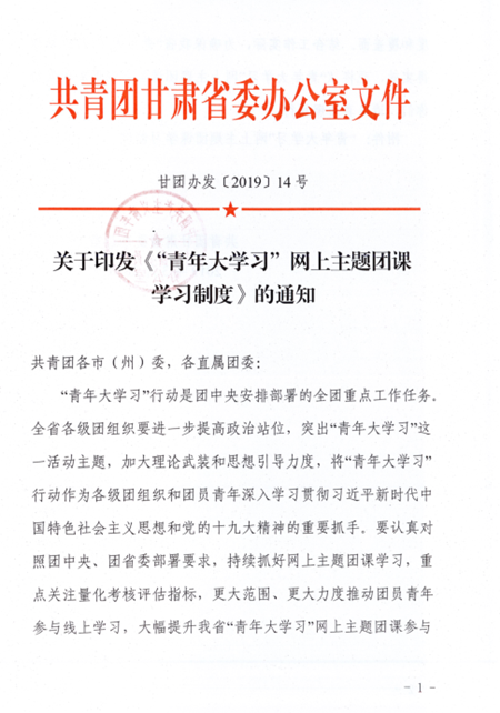 关于印发《“青年大学习”网上主题团课学习制度》的通知