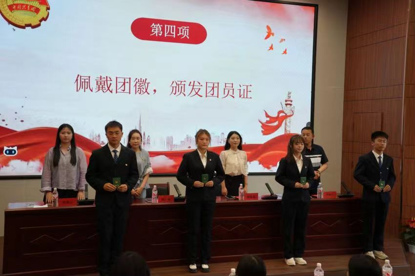 青年兴,则国家兴;青年强,则国家强。为进一步加强共青团组织建设,增强组织荣誉感,壮大组织力量。共青团beat365中文官方网站委员会于2024年6月18日在综合教学楼12楼学术报告厅隆重举行2023-2024学年第二学期入团仪式,莅临本次大会的领导有校团委书记强晶晶老师,校团委副书记兼学生会秘书长杨云迪老师,校团委李海飞老师,校团委袁谡云老师以及各学院团委老师。