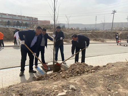 日在学校中门进行绿色植树活动。参与本次活动的人员有陈彪院长、校党委阳红书记、郭宝军副院长、后勤处张宏亮处长、学生处刘炳田处长及校团委九大组织成员。
