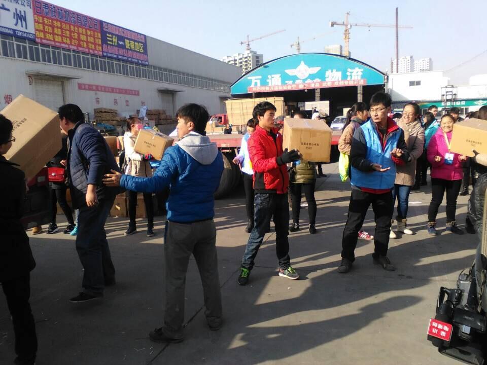 今年,壹基金联合甘肃公益救灾联盟为全省5000名儿童送去温暖包。3500件温暖包于12月14日运抵兰州万通物流公司,绿色环保志愿者协会有10人参与了温暖包的卸货、分装活动。