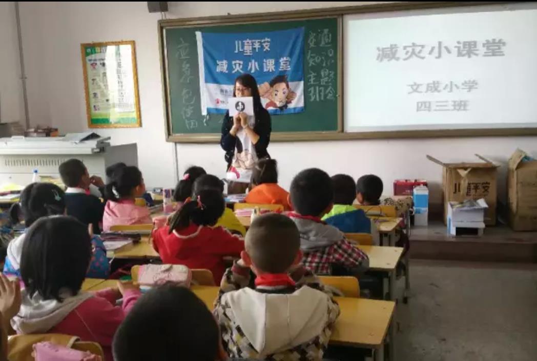 在文成小学六七班和四五班举办减灾小课堂主题班会:1、交通安全最重要,所有标识我知道!志愿者和老师一起设计了很多交通标识图片让小学生们来识别,达到提高防灾减灾意识!2、应急包里有什么?你来比划我来猜!这个减灾小游戏是让孩子们用手势比划出应急包里要准备的生活必备品,而对方则要快速说出比划的是什么物品。