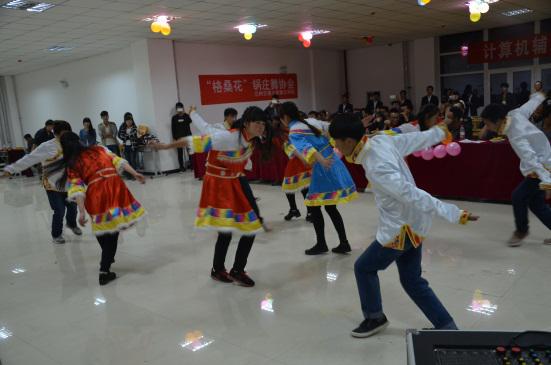 “格桑花”锅庄舞协会与计算机辅助设计协会于2014年10月24日晚上7:00在体育馆208教室举办了大一新生联谊晚会。本次活动以“凝聚社团智慧,展现会员风采,促进协会交流,打造精英团队”为主题,为同学们提供了一个展现自我的平台,各协会的节目都独具特色,尤其是我们协会的歌伴舞《踏歌而来缘定》给大家带来了一场视觉与听觉上的享受盛宴。