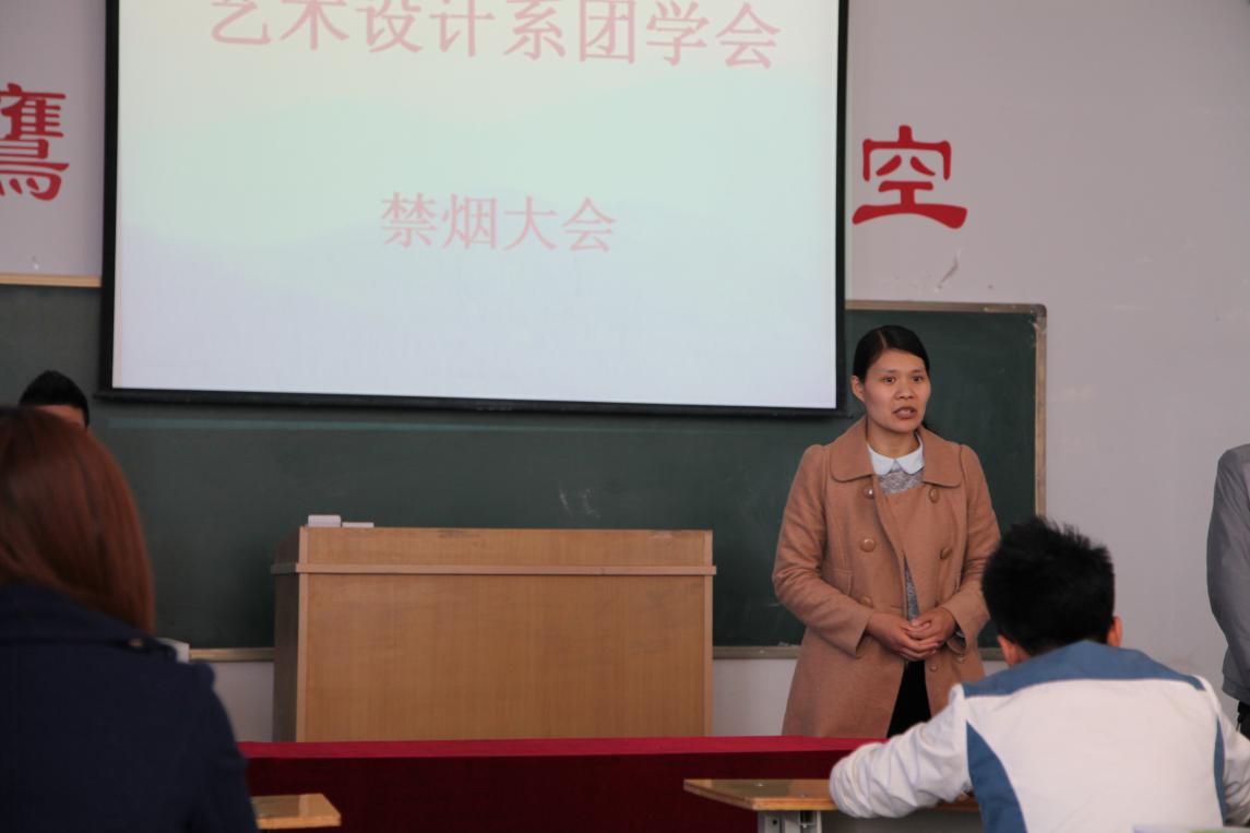 在会上,郭老师首先声明了吸烟对于健康的危害,宣读了学院对于违反禁烟规定学生的处罚办法,接着呼吁全系师生共同营造一个无烟环境,并组织团学会各部部长牵头,成立艺术设计系禁烟督导小组,明确分工。