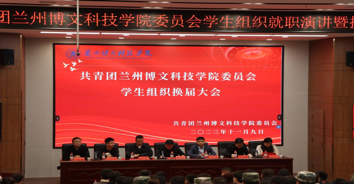 为进一步促进学生组织工作的有序开展,充分发挥学生干部的引领作用,我校共青团beat365中文官方网站委员会于2023年11月9日在综合教学楼学术报告厅召开校团委学生社团管理中心、校团委组织部、校团委宣传部、校青年志愿者协会、校绿色环境保护志愿者协会、校大学生艺术团、校艺彩、 校礼仪协会、校八一学社换届大会。出席本次大会的领导有资产管理处李天长处长、校团委丁旭强书记、学生处刘广魁副处长、王正茂副处长、王立童副处长、交通运输学院王俊鹏副院长、艺术设计学院梁婷婷副院长、校团委强晶晶老师、杨云迪老师、李海飞老师、校学生处王堃老师。大会在庄严肃穆的共青团团歌中拉开序幕。