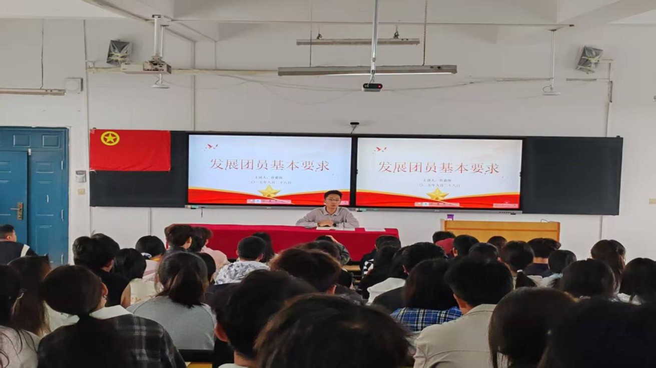 为深入贯彻落实新时代团的组织路线,进一步加强团员队伍先进性建设,切实做好团员发展工作,提升团员发展质量,强化青年思想引领,9月28日校团委于教学楼T2教室开展了第一讲“发展团员基本要求”的团课培训。本次团课由校团委老师乔嘉庚主讲,百余名入团积极分子一同参与学习。