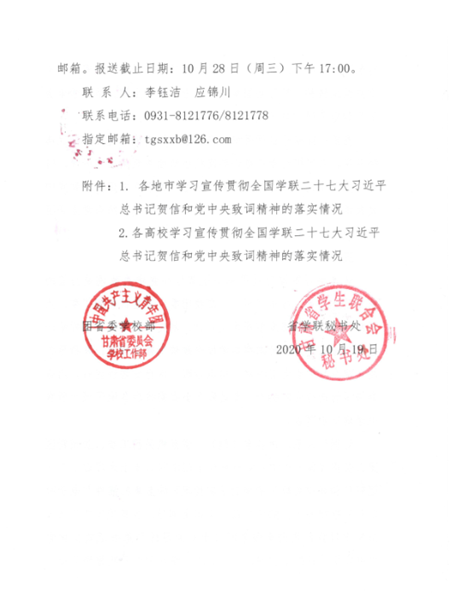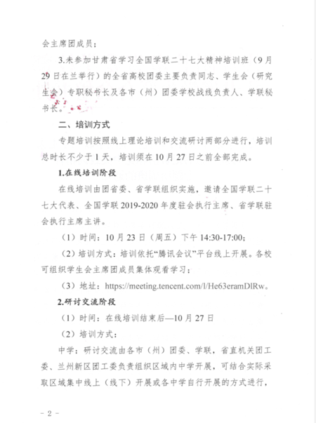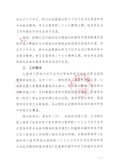 关于举办甘肃省学习宣传全国学联二十七大习近平总书记贺信和党中央致词精神专题培训班的通知
