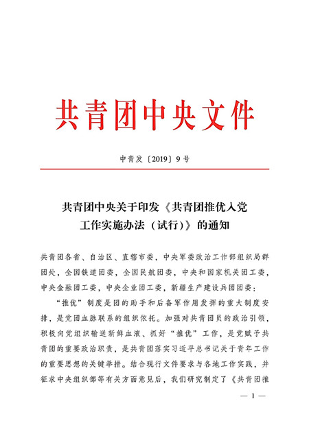 附件:《共青团中央关于印发<共青团推优入党工作实施办法(试行)>的通知》