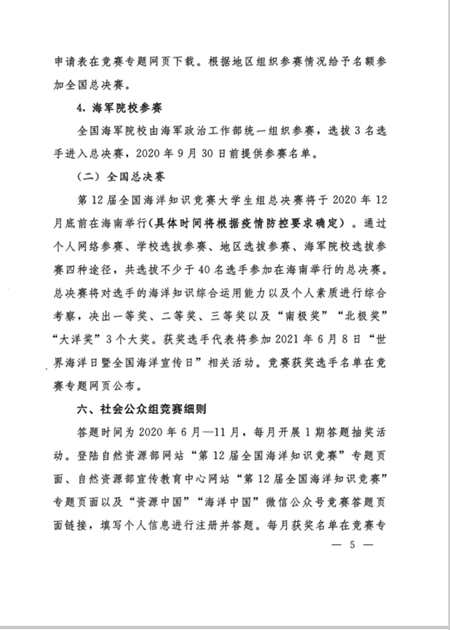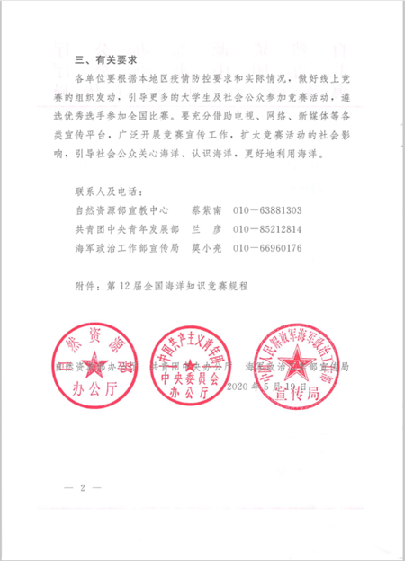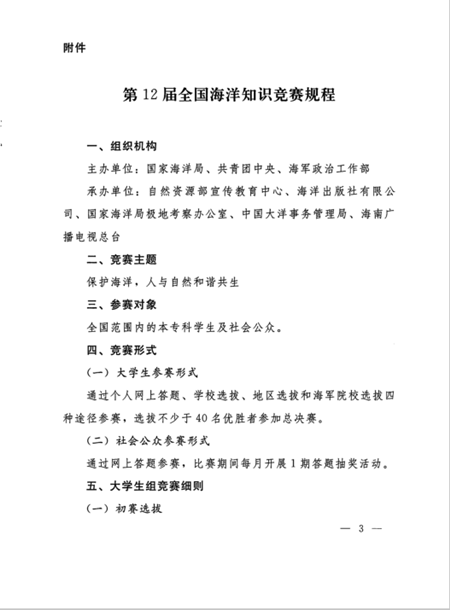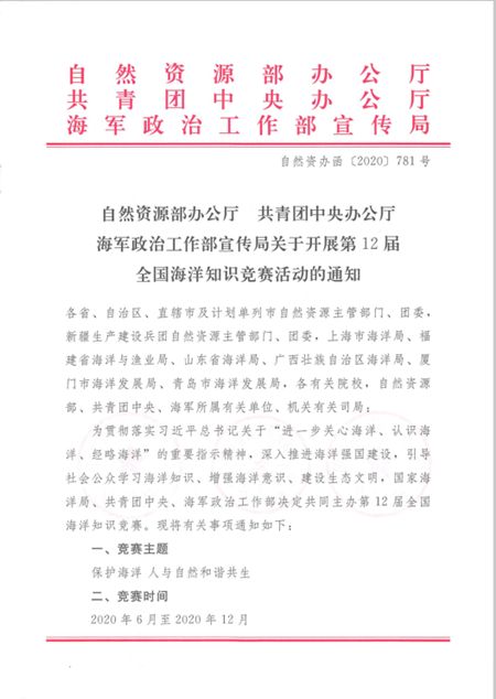 自然资源部办公厅 共青团中央办公厅海军政治工作部宣传局关于开展第12届全国海洋知识竞赛活动的通知