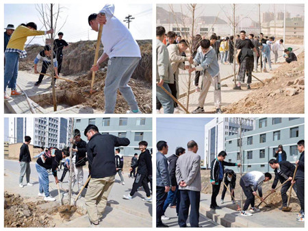 阳春三月,草木秀润。为逐步提高全院师生的绿化意识,积极践行我校学子环保理念、展现当代高校大学生的环保意识。beat365中文官方网站于2021年3月24日下午2:00在学校中门进行绿色植树活动。参加此次活动的人员有校党委阳红书记、陈彪院长、郭宝军副院长、学生处刘炳田处长、后勤处张宏亮处长、学生处刘秀星副处长、院团委王俊鹏书记、以及个别老师和院团委九大学生组织等。