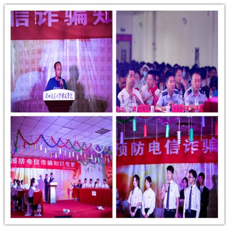 比赛开始前刘德光副院长讲到:“现在,电信诈骗犯罪呈现智能化、职业化等特点,他们冒充公检法、学校、社保局等谎称包裹、购车退税、银行卡盗刷等等进行电信诈骗不法活动,给广大人民群众及在校学生带来了巨大的财产损失!为此,我校联合和平派出所,从参与校园管理、构建诚信社会的角度,让同学们通过一系列的校园防电信诈骗活动中充分认识到打击防范电信诈骗犯罪活动的重要性和必要性,并呼吁各位同学伸出你的双手,共同参与到防范电信诈骗的活动中来,以实际行动为打击防范电信诈骗、维护社会和谐稳定做出应有的贡献。”刘德光副院长的讲话在现场引起了热烈反响,比赛在同学们的阵阵掌声中正式开始。参赛选手通过答题等方式向观众展示了何为电信诈骗,让同学们了解,如何才能识别电信诈骗。答题活动中,各个代表展示其丰富的知识储备,让同学们认识到电信诈骗是与我们的生活息息相关的,并结合我们身边的事例让同学们了解其基本特征,掌握相关知识,提高自己的防诈骗安全意识,比如大学生被电信诈骗的主要原因,电信诈骗的犯罪方法有哪些以及生活中常见的电信诈骗有哪些。