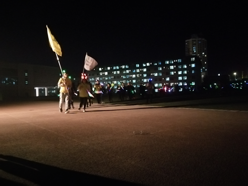 下午五点半志愿者们到达新校区操场,开始为扬帆公益跑活动准备所需的物资以及场地。傍晚六点半活动准时开始,绿精灵们开始给参与扬帆公益跑活动的人们发荧光棒和牛角灯。随着主持人的一声令下,伴随着愉悦的心情和歌声,绿精灵们挥舞着手中的荧光帮,开始快乐的奔跑。期间活动主持人介绍了扬帆公益项目组织负责人以及其所开展的公益项目。跑步结束后,大家进行了短暂的游戏和才艺展示环节。