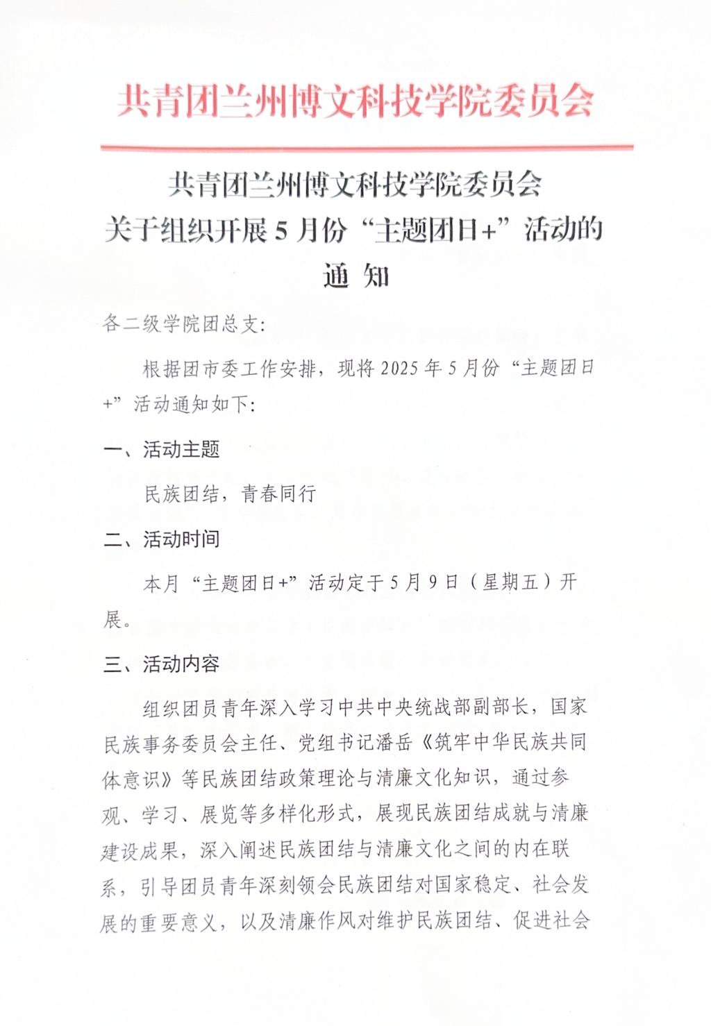 共青团beat365中文官方网站委员会关于组织开展5月份“主题团日+”活动的通 知