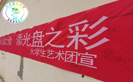 10月6日,大学生艺术团在校园醒目位置悬挂“聚点滴之俭添光盘之彩”的宣传横幅,并发起了承诺加入“光盘行动”签名活动,组织大家进行签名,自愿加入“光盘行动”的行列,成为节俭之风树立者,光盘行动行动者。
