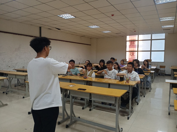 第二次手语课堂依旧由本服务队的大一干事张锦羽教授。这一次她将为我们教另一首最近特别火的歌——《还是会长大》。这是原本用于参加手语联赛个人赛的节目,参赛的就是我们的张锦羽干事。这次她也是教的特别好,趣味性与专业性并存,到场的大一干事和大二部长都学的特别认真。这一次的教法与上一次略有不同。这一次,不仅会在上节课的基础上,让同学们猜测某些词的动作,以此来引起同学们的好奇心;同时,张锦羽会时不时问同学们上节课学过的动作,以作复习。到了下半场,手语队的队长张鹏举上场,给大家教了几句特别励志的句子,大家好像都对这几句话有所触动,都学得特别认真。这是本学期的最后一次手语课堂,大家在课堂上学得认真,对于是不是最后一次,大家都不是很在意,只想将欢乐延续。课后,大三学长长学姐们对本次手语课堂提出了宝贵的意见和介意,希望下次的手语课堂能更好。