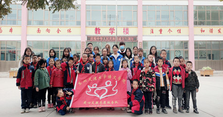 2020年11月4日,我校青年志愿者协会爱心支教志愿服务队志愿者在这个有着暖暖的阳光的秋日下午来到榆中县猪咀岭小学开展常规的舞蹈——锅庄舞教学活动。虽然距离入秋之日已经过去了好久,但天公作美,今日的太阳却是格外的的红火,连带着我们志愿者和孩子们的心情都格外热烈。