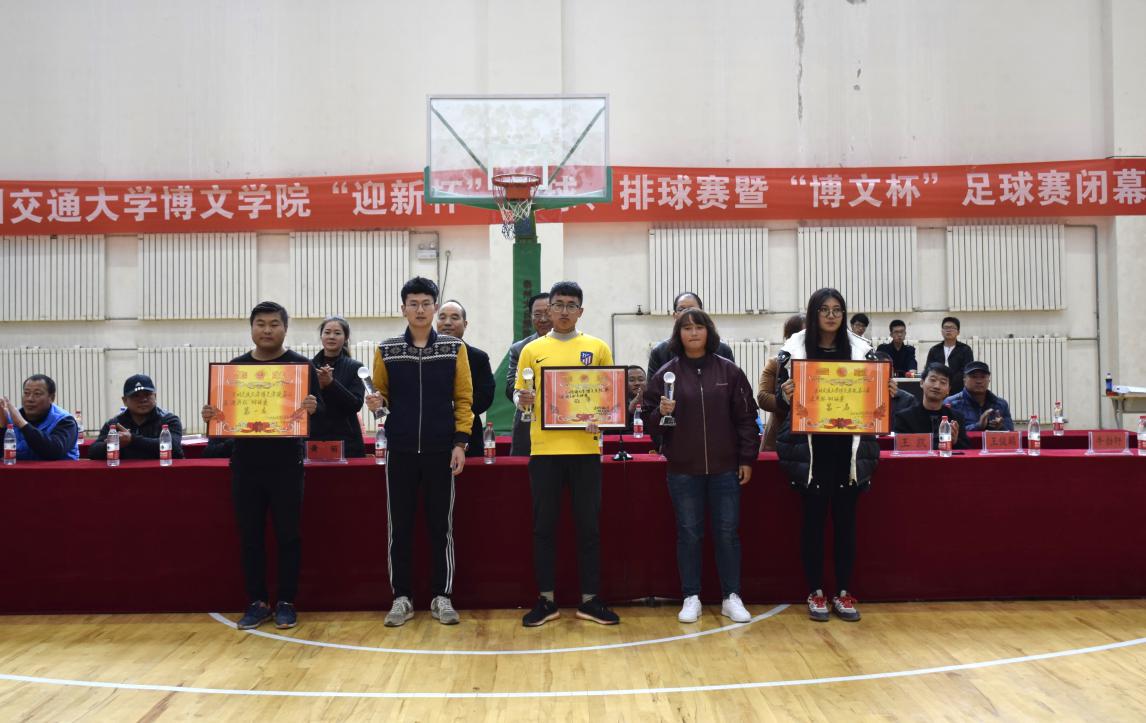 2017年11月17日中午,由体育部主办的兰州交通大学博文学院第十六届“迎新杯”篮球赛、第二届迎新杯排球赛和第八届“博文杯”足球赛在体育馆同期闭幕。兰州交通大学博文学院院长陈彪、副院长左闯一行出席了本次闭幕式并致辞,出席本次开幕式的领导还为获得优异成绩的队伍和个人颁奖,此举促进了我院课余体育锻炼的良好氛围,激发了我院师生投身于体育锻炼的热情。