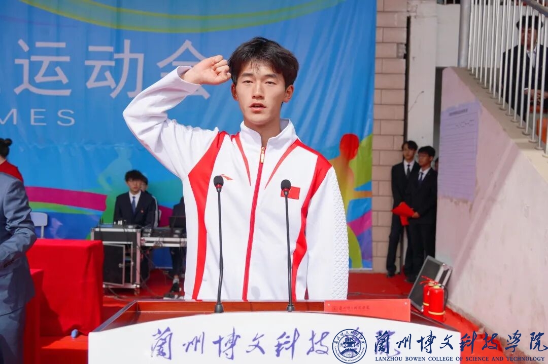 随后,学生运动员代表与裁判员代表先后上台宣誓,运动员代表承诺将遵守赛事规则、全力以赴、公平竞争,裁判员代表承诺秉持公正原则执裁,共同守护赛场秩序,为运动会顺利开展筑牢基础。