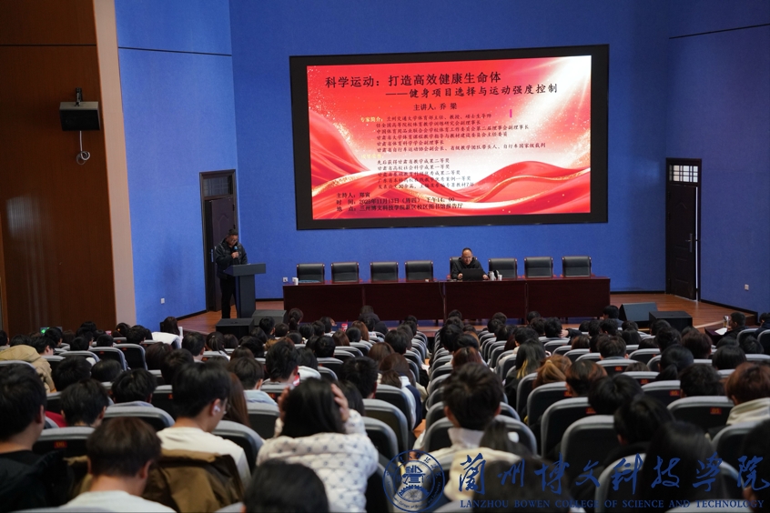 2025年11月13日,在beat365中文官方网站新区校区图书馆报告厅举办了一场以“科学运动:打造高效健康生命体”的主题讲座,兰州交通大学乔梁教授分享了健身项目选择与运动强度控制的核心知识,为健身锻炼提供了科学指导。