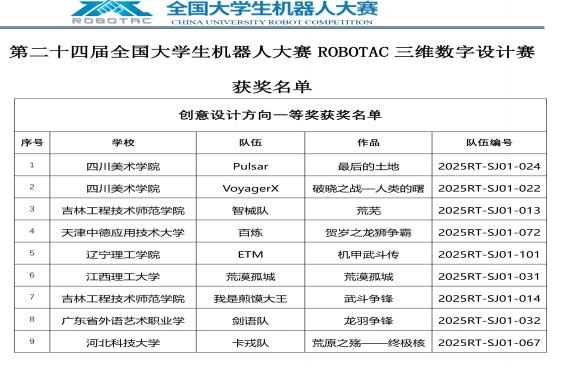 我校由信息科学与工程学院院长江雪芸带队出征。在这场高手如云的赛事中,我校学子凭借卓越的表现,于“三维数字设计赛 - 交互设计赛道”中脱颖而出,一举斩获国家级二等奖和三等奖各一项,充分展现了我校学生在机器人创新设计与应用领域的雄厚实力。