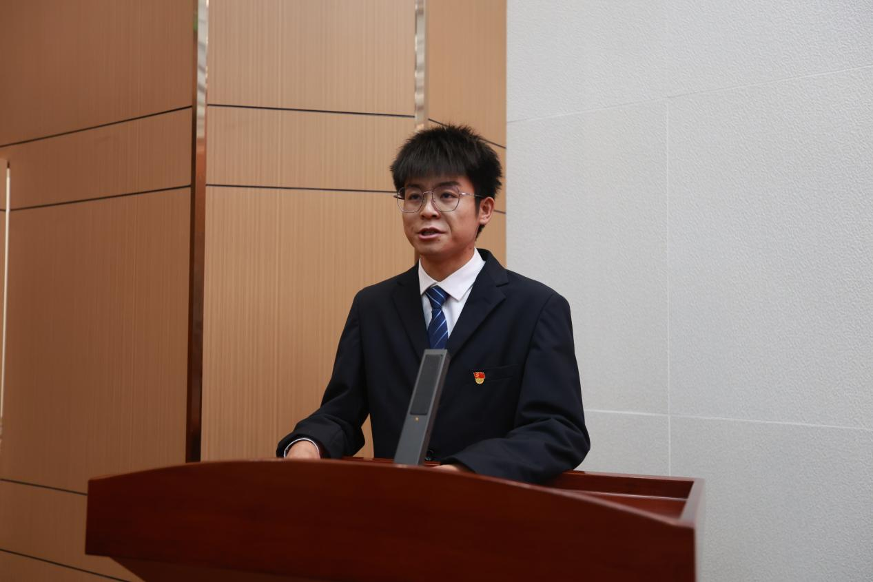 随后,2023级信息管理与信息系统班张成甲同学作为获奖代表发言。他首先向关心学生的领导、老师和给予支持的同学们表达了诚挚感谢,认为个人的成长与成绩离不开师长的悉心指导和同学的鼎力相助。其次,张成甲同学分享了自己在学习、思想、工作等方面的收获:学业上勤奋努力,荣获2024学年国家励志奖学金、校级优秀学生干部、优秀共青团员及院级三好学生等多项荣誉;思想上追求进步,已光荣成为一名中共预备党员,立志践行服务宗旨;工作中尽职尽责,同时担任班长和学院团学会纪检部部长,积极组织班级活动营造团结氛围,严格执行纪律检查与活动秩序维护,有效提升了组织协调能力并赢得了同学们的信任。最后,张成甲同学表示,荣誉属于过去,未来将继续严格要求自己,精进学业、履行党员使命和干部职责,并号召同学们以奋斗书写青春华章,共创美好未来。