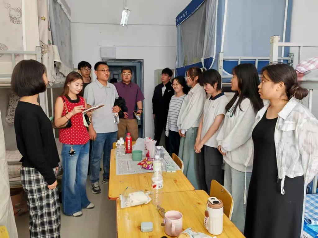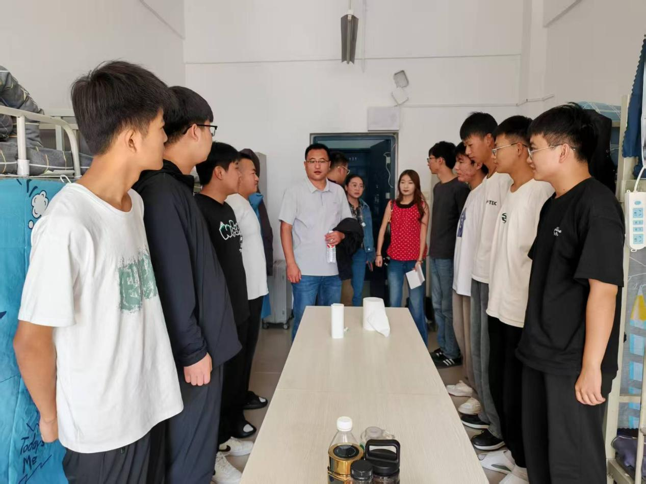 走进新生宿舍,学院领导和老师们首先细致查看了宿舍的整体环境,从床铺设施、采光通风到水电供应、储物空间,逐一询问同学们“住宿是否习惯”“生活必需品是否齐全”“生活上有没有遇到什么小麻烦”等等。看到部分新生仍在整理行李,江院长微笑着叮嘱大家“集体生活要注意物品收纳,既能保持宿舍整洁,也能让自己住得更舒心”;学生管理副院长赵磊则重点强调了宿舍安全问题,结合以往案例提醒同学们“严禁使用违规电器,离开宿舍要及时断电锁门,既要保护个人财物安全,也要共同维护宿舍集体安全”,细微之处的关怀让新生们倍感亲切。