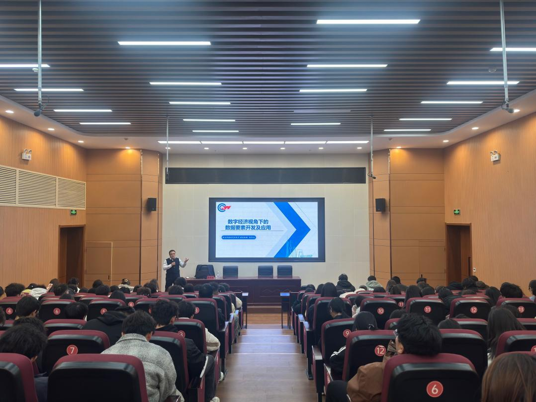 为帮助学生洞察产业前沿,把握数字经济发展机遇。2025年11月25日下午,我院成功举办“数字经济视角下的数据要素开发及应用”专题讲座。本次讲座特邀甘肃省产权交易所集团副总经理、数据要素领域资深专家喻泽文担任主讲,为大数据管理与应用、计算机科学与技术等专业的百余名师生带来了一场紧扣时代脉搏的学术与实践盛宴。