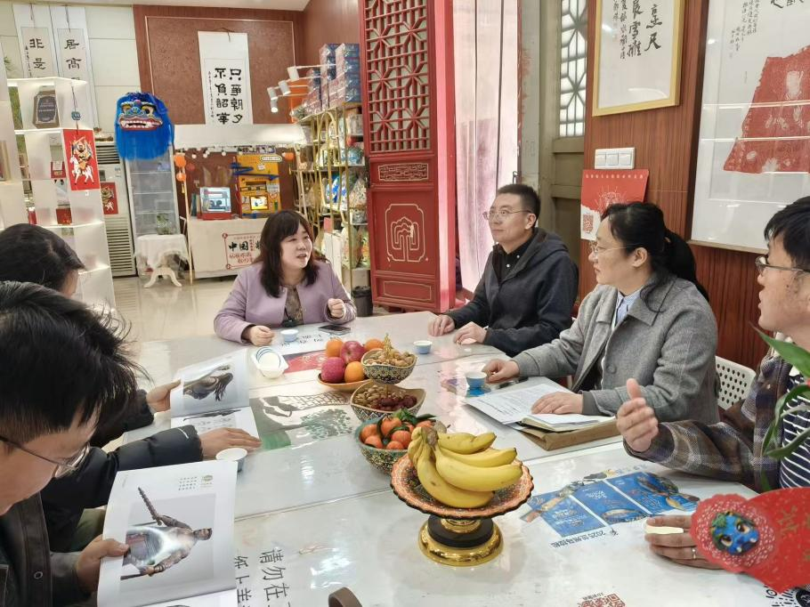 在兰州市博物馆数字文创研发中心,考察实训团队先后参观了“兰小五”文创展示区、数字文创研发区,详细了解了“兰小五”的设计理念、创作过程、现有数字产品形态及未来研发规划,近距离感受数字技术与传统文化融合的独特魅力,直观了解数字文创行业的发展趋势和岗位需求。随后,团队与兰州市博物馆数字文创研发中心相关负责人、甘肃嘉元数字科技有限公司董事长金俊开展座谈交流。