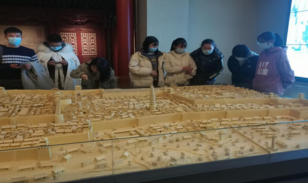 今天早晨的天气相比于平日来说可谓是寒气逼人,正好天空还落着小雪,虽然说不上大雪缤纷,可当我们到兰州市博物馆门口,每个人的头都顶着一片“白帽儿”,大家相视一笑,随即井然有序的排好了队,开始了我们今天的参观活动。首先志愿者们在西厅集合,进行参观,首当其冲映入我们眼帘的是琳琅满目的各个年代的陶罐和六七千年前尧舜时期的青铜器,其中让人哭笑不得的是:一个志愿者面对短小镌秀的青铜剑表示疑惑“古人就是用这么短的兵器打仗的吗?”大家听闻纷纷发言,通过相互交流,彼此间的情绪也不禁高涨起来,那个疑惑的志愿者也是豁然开朗;随后大家进入东厅,瞧着里面惟妙惟肖的宫廷建筑,不得不说古人在某些方面给我们留下的文化遗产让我们骄傲,更值得我们沉下心绪学习。