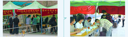 为排队报到的同学们遮阳挡雨