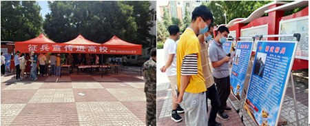宣讲活动中,贺部长紧紧围绕深入贯彻习主席关于大学生征兵重要批示和给南开大学入伍大学生回信精神的重大政治意;如何做好常态化疫情防控下的征兵宣传工作;怎样实现国家提出的“扩大大学生应征入伍规模,提高应届毕业生征集比例”工作目标;并且对大家非常关心的应征报名程序、体检政审标准、军人福利待遇待、个人发展前景等问题都做了详细解答,贺部长结合自身成长经历,鼓励大学生投身军营,支持国防建设,在部队生活中书写绚烂无悔的青春篇章。在学生参观展板和领取宣传资料过程中,学生提出各类疑惑和问题,各系负责征兵工作的老师结合多年工作经验现场答疑解惑,将宣讲活动推进高潮。学院退役复学学生代表,也从不同角度分享了自己部队生活的难忘回忆与宝贵收获,讲述自己从大学生成长为优秀士兵的过程,部队生活让他们获益匪浅,不仅锻炼了体能、磨练了意志、学习了技能,更懂得责任、学会担当,实现自己的人生价值。