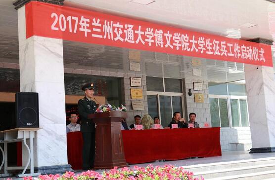 最后,兰州交通大学博文学院刘彦凯副院长做总结性的发言,刘院长从不同的角度向大家介绍了参军入伍的意义,并向全体同学解读了国家对大学生入伍享有的相关优待政策,要求辅导员、班主任启动仪式结束后,组织学生召开主题班会,认真传达会议精神,进一步认清形势,明白任务,立足本职,确保高标准、高质量地完成我院2017年征兵工作。