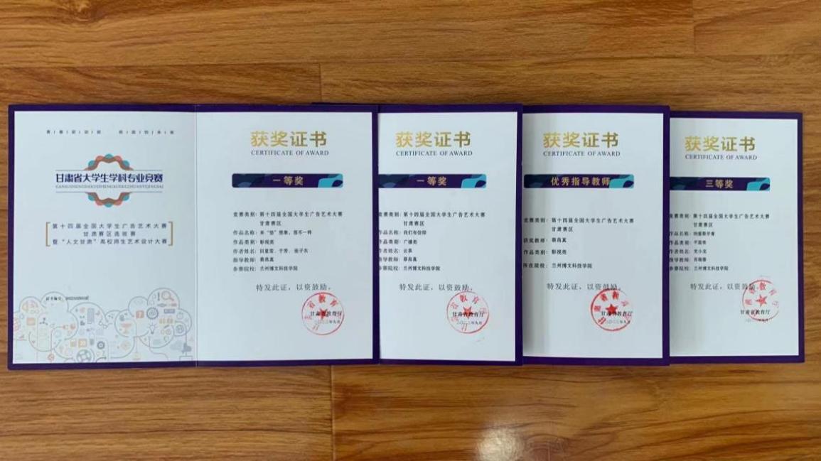 在第十四届全国大学生广告艺术大赛中,艺术设计学院斩获全国优秀奖2项及甘肃赛区一等奖2项、三等奖1项。