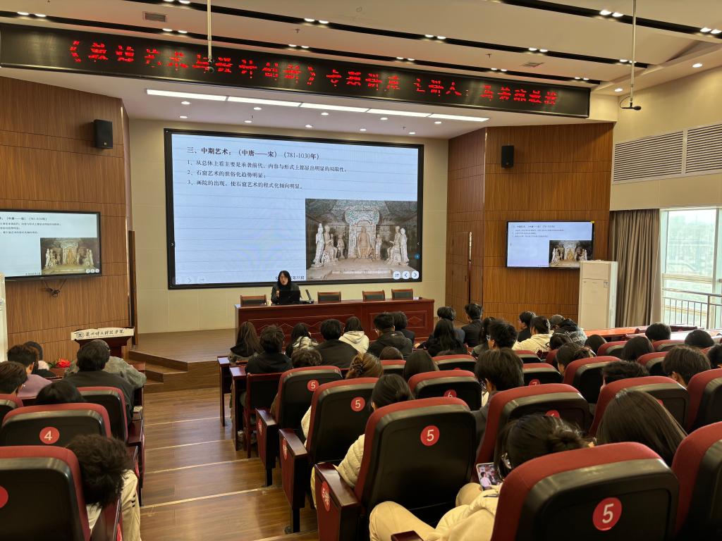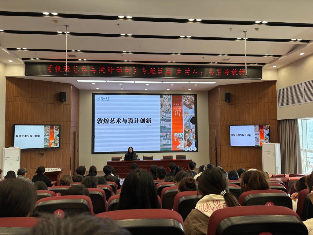 2025 年 10 月 31 日下午,beat365中文官方网站北校区 12 楼大报告厅座无虚席,一场主题为“敦煌艺术与设计创新”的高水平学术讲座在此隆重举行。本次活动由艺术设计学院与教务处联合主办,特邀兰州大学艺术学院马若琼教授担任主讲嘉宾,艺术设计学院赵海霞副教授主持讲座。