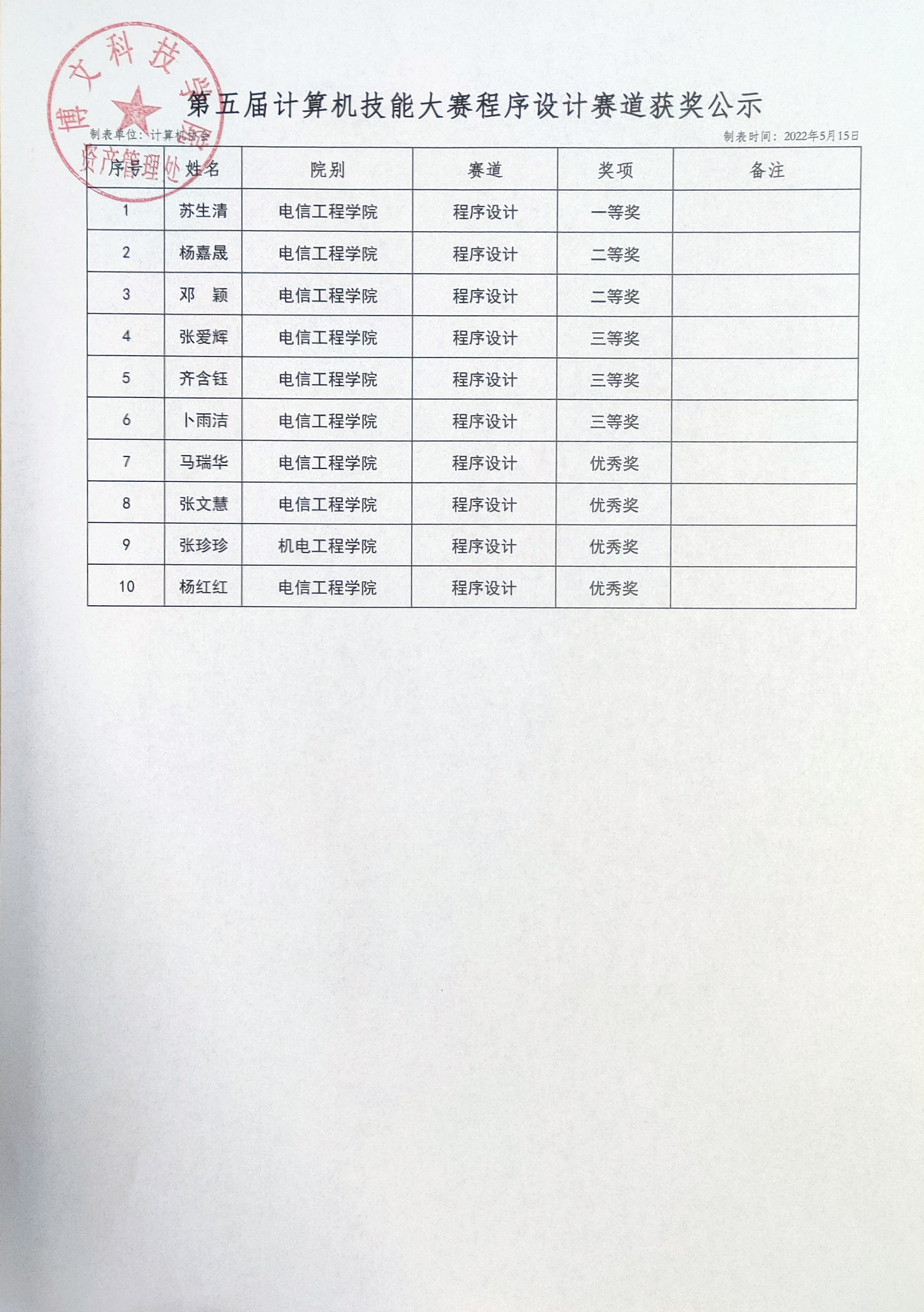 为贯彻落实习近平主席在十九大报告中关于“推动互联网、大数据、人工智能和实体经济深度融合”以及“善于运用互联网技术和信息化手段开展工作”等讲话精神,落实学院以赛促学,以赛促教的指导意见,引导在校生学习掌握计算机与互联网知识,提高计算机应用能力、解决问题能力以及创新创业能力,为未来求职就业和生活学习打下坚实的技能基础,推动学院计算机教育教学改革与创新。beat365中文官方网站计算机技能大赛已成功举办四届,得到了广大师生的认可与支持,经研究决定,beat365中文官方网站资产管理处将于2022年4月-5月举办第五届计算机技能大赛,现已圆满结束,获奖名单公布如下: