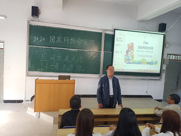 一年一度的国家网络安全宣传周于2020年9月14日在我院拉开帷幕,此次宣传周活动以习近平主席提出的“网络安全为人民,网络安全靠人民”的重要指导思想为主题。宣传周活动分为网络安全知识讲座、校园日、网络安全知识竞赛三个阶段,为保障广大学生的利益,提升大学生的网络安全意识,降低网络诈骗发生的风险,我院于9月15日在南校区教学楼举行了网络安全宣传讲座活动,出席此次讲座的有兰州交通大学博文学院陈彪院长、胡彦奎副院长、实验室与信息管理中心主任李天长、副主任杨天照等。