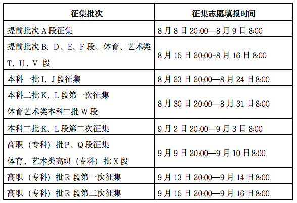网上征集志愿的批次及时间