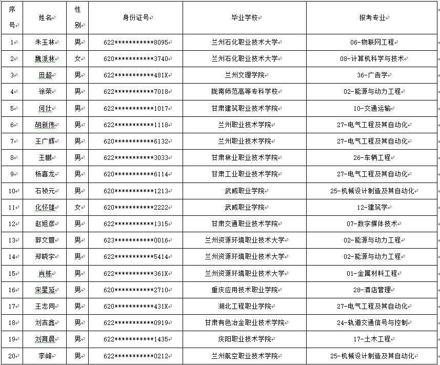根据《甘肃省普通高等学校高职(专科)升本科考试招生工作方案(试行)》(甘教发函〔2021〕46号)和《2022年甘肃省普通高校高职(专科)升本科免试生招生工作实施方案》(甘招委发〔2022〕1号)的文件精神,现将我校免试生拟录取名单予以公示(详细名单见下表),公示期为2022年3月14日至3月18日。