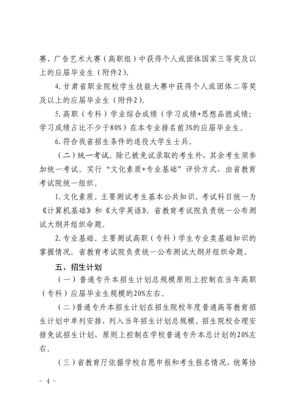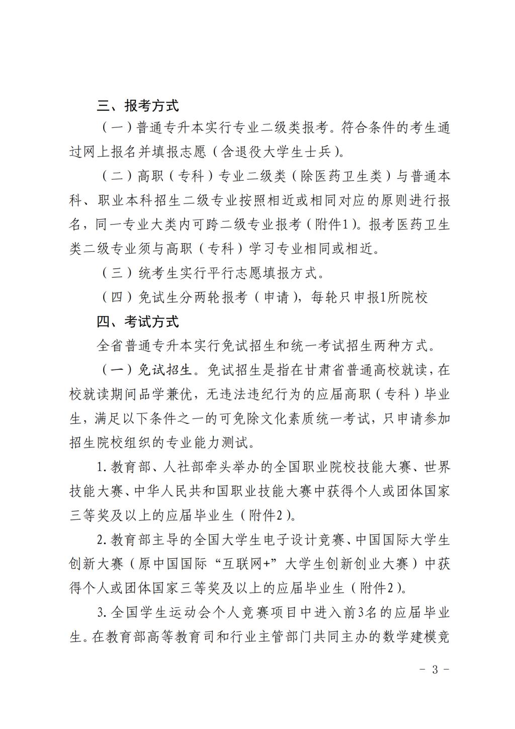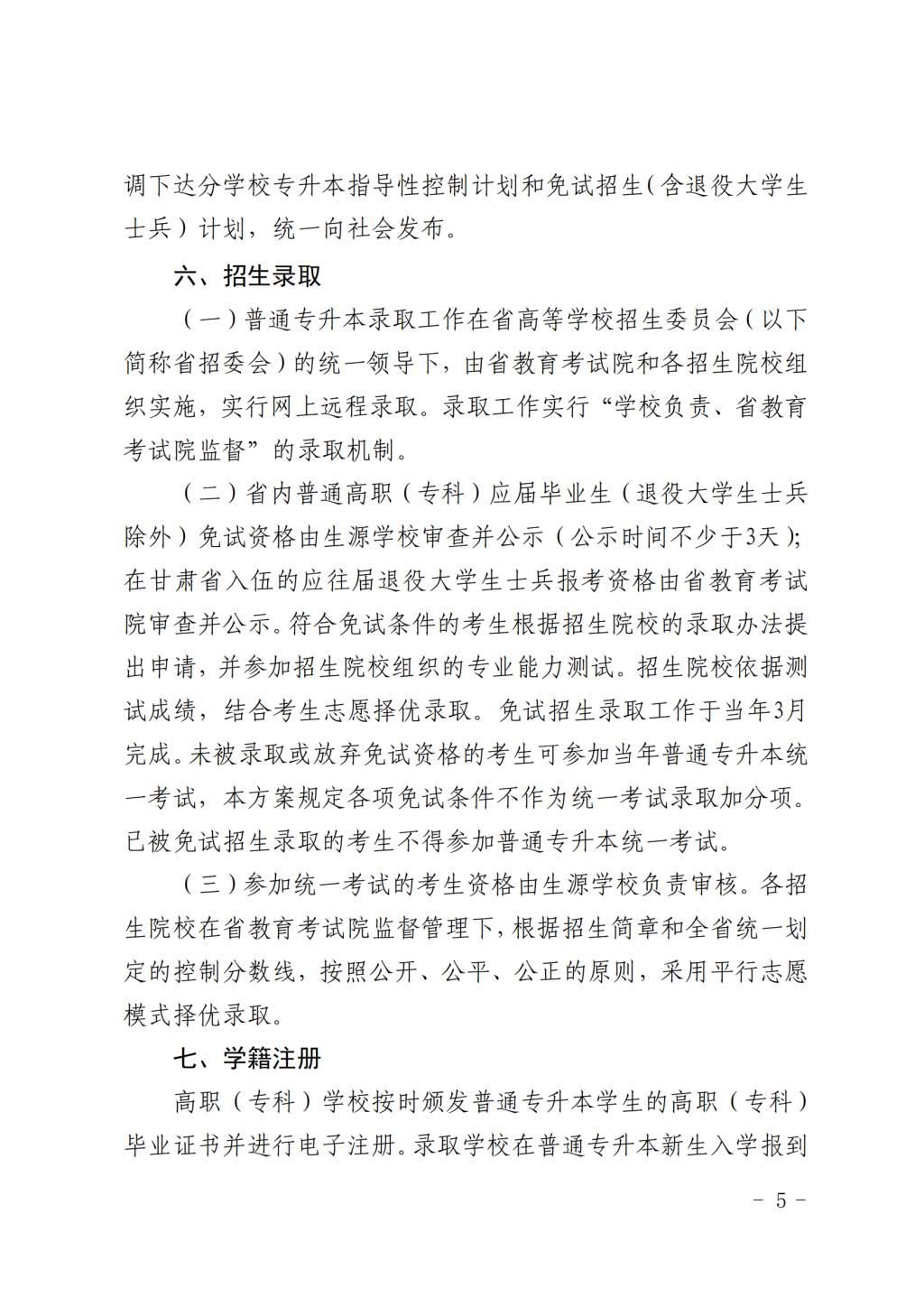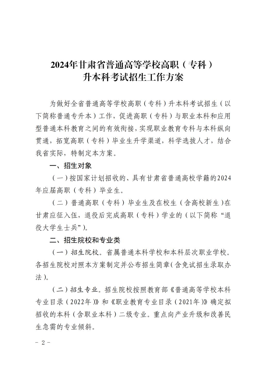 甘肃省教育厅关于印发《2024 年甘肃省 普通高等学校高职(专科)升本科 考试招生工作方案》的通知