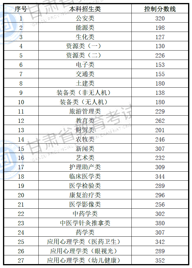 2025年甘肃省普通高校高职(专科)升本科统一考试招生录取控制分数线公告