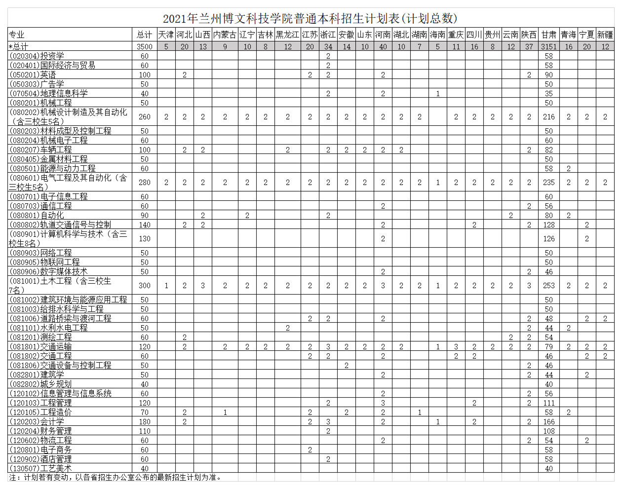 2021年beat365中文官方网站招生来源计划表(计划总数)